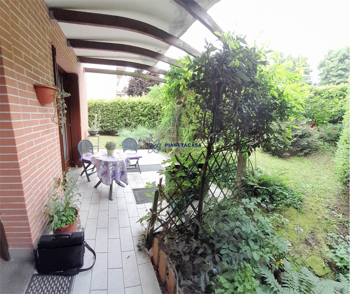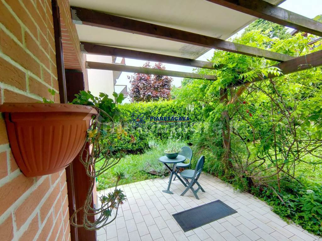 Nella zona Mozzo Pascoletto, in posizione tranquilla e riservata, in piccola palazzina di poche famiglie, appartamento composto da soggiorno con cucina a vista, una camera da letto, un bagno finestrato, giardino di proprieta' sui due lati della casa con porticato annesso ,con esposizione sud-ovest, lavanderia/ripostiglio e box ampio.